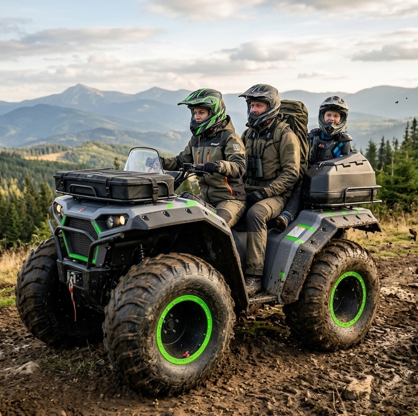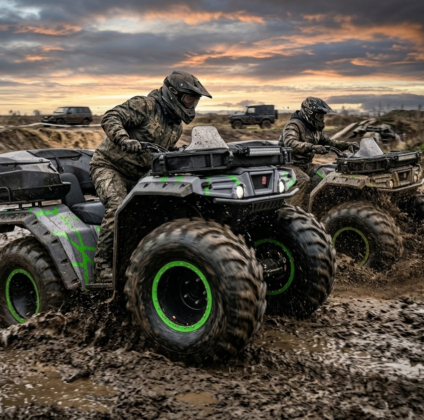 Geniş ebatlı lastik yapısı, özel süspansiyon sistemi ve dengeli ağırlık dağılımı sayesinde; çamur, kar, kaya ve engebeli arazilerde kesintisiz ilerleme sunar.